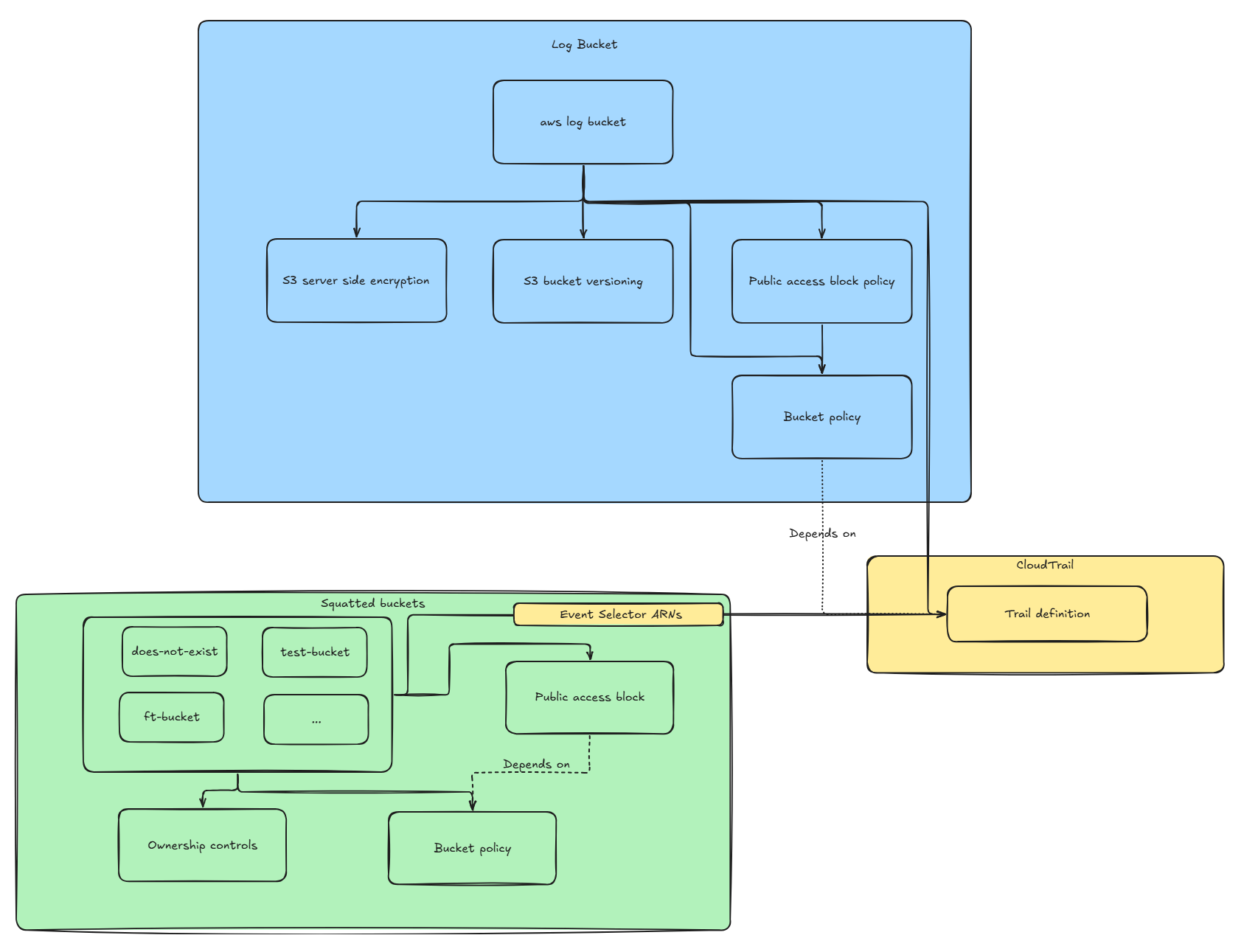 The idea behind this is that if all buckets created have a truly unique/non-hijackable naming convention, someone won’t be able to squat that bucket meaning any dangling resources won’t be squattable anymore.